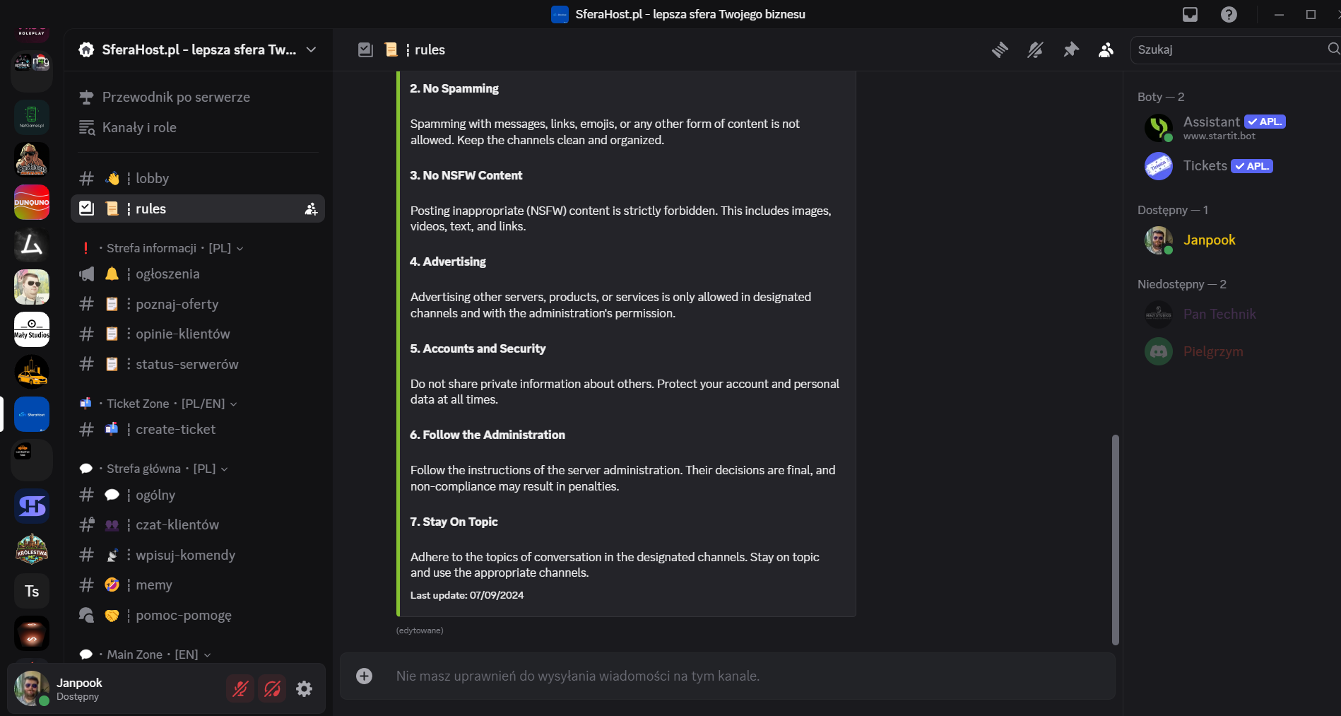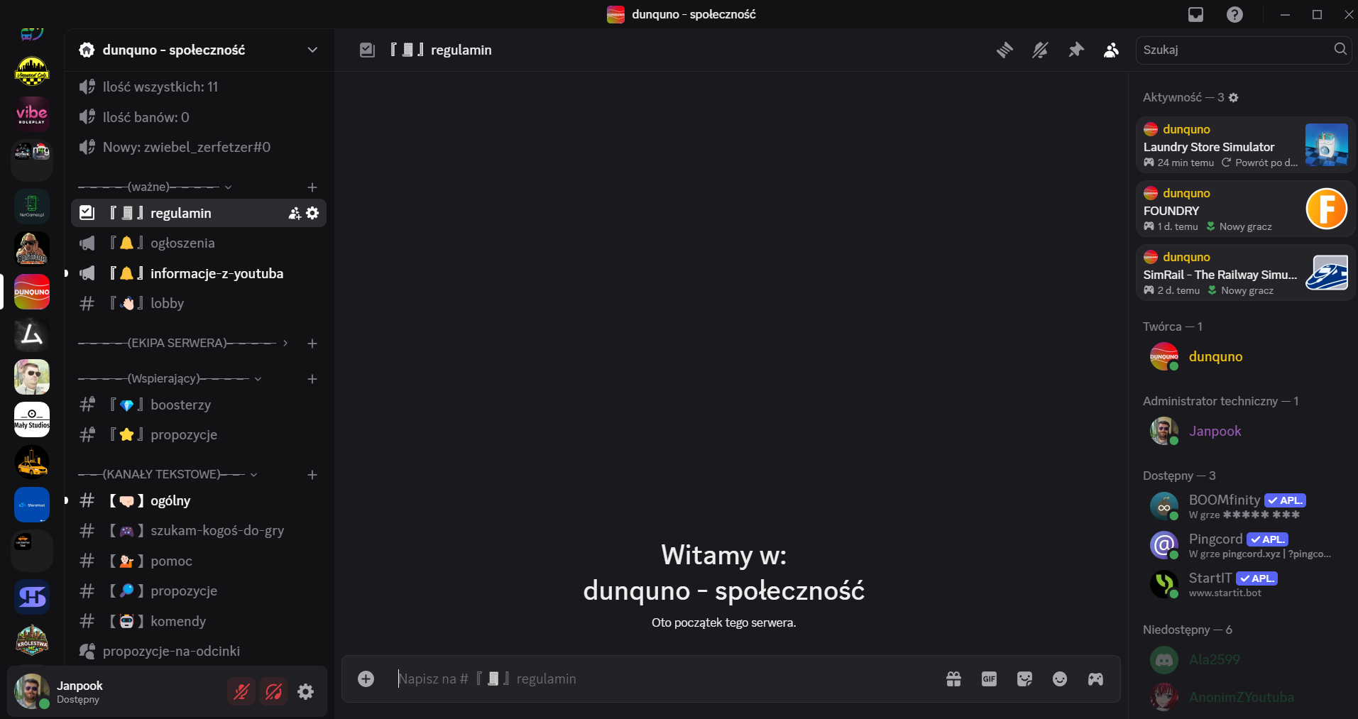 - Wykorzystuję sprawdzone boty, takie jak ProBot, BOOMfinity, lub StartIT, które umożliwiają ogólne zarządzanie serwerem. Dzięki nim, administracja staje się prostsza, a serwer funkcjonalniejszy.